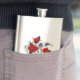 Contorno, luna de media luna mecánica con engranajes, decorada con rosas rojas con tallo negro y hojas sobre fondo blanco. Steampunk