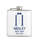 Este matraz es genial para el mejor hombre. Si toda tu fiesta de bodas estuviera de acuerdo con este diseño con suspensores y una corbata de arco en azul sería perfecto. Casual pero formal. Sería genial para un fin de semana de soltero o una fiesta de soltero. Un regalo divertido para una gran ocasión. Consigue uno para todos en la fiesta de novias. El título puede cambiarse a novio, novio, usuario, etc.