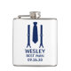 Esta petaca es perfecta para el mejor hombre. Si todos los miembros de tu cortejo nupcial van a llevar traje, este diseño con tirantes y corbata azul sería perfecto. Informal pero formal. Serían geniales para una despedida de soltero o fin de semana. Consigue uno para todos los miembros del cortejo nupcial. El título se puede cambiar a novio, padrino, ujier, etc.