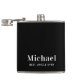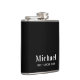 Un elegante matraz negro para el mejor tío con su nombre montado en la típica tipografía serif blanca y el "mejor tío de la historia" en una simple tipografía moderna.