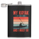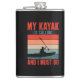 Impresionantes camisetas de diseño de kayak, posters, bolsas, planificadores y más con una silueta en kayak en un río con texto que dice ¡Mi Kayak llama y debo irme! Este colorido kayak está muy bien diseñado para los kayakistas, que parecen no tener suficiente tiempo para hacer kayak en el agua.