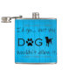 Un matraz perfecto para los que prefieren la compañía de perros y las comodidades de casa. Este diseño del matraz incluye un texto que dice "Yo iría...pero mi perro no lo permitiría", con una huella de pata y un adorno de silueta de perro en un fondo azul de madera. También hay artículos de regalo adicionales disponibles con este diseño.