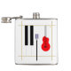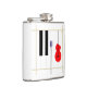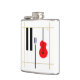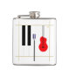 En minimalistisk design har ett vertikalt arrangemang av ett pianoklaviatur, en mikrofon och en röd gitarr. Tunna gyllene linjer ramar in elementen, och en liten stjärna lägger till en accent till kompositionen.