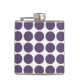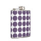 Mini Polka Dots Flask, de moda y agradable. Este diseño presenta pequeños puntos de polka circular en color morado y blanco. Se puede añadir texto a este diseño para darle un toque personal.