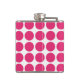 Mini Polka Dots Flask, de moda y agradable. Este diseño presenta pequeños puntos de polka circular en rosa y blanco. Se puede añadir texto a este diseño para darle un toque personal.