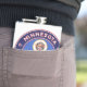 Insignia de Minnesota con bandera de Minnesota y bandera de los colores de Estados Unidos, forma redondeada. Emblema de Minnesota. Sello de Minnesota. Colección de Estados Unidos.