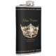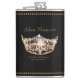 Un poco de comodidad en casa en cualquier lugar donde vayas a celebrar con estilo. Audaz corona de oro impresa en el frente, junto con texto para que usted personalizar con el suyo propio. Patrón de diamante de color dorado en la parte superior e inferior del matraz. Colores plateados, negros y dorados. Corona al estilo de Miss América.