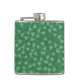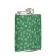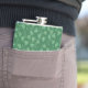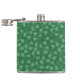 Un matraz de cadera muy moda, con un patrón marcadamente marrón de rocas verdes delineado en blanco, en un fondo verde oscuro. Este patrón, que forma parte de la colección "Shamrock" de Posh & Painterly, se puede ajustar para que se ajuste a cualquier matraz.