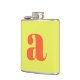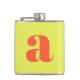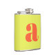 This personalized flask features a bold single initial in warm orange on a bright chartreuse background for a fun, modern look. The graphic typography feels playful yet polished, making it a great choice for bridal party favors, bachelorette weekends, or thank-you gifts for bridesmaids and friends. Customize with an initial to create a personal keepsake that feels thoughtful. Designed for brides who want their wedding party gifts to feel stylish, useful, and memorable.