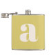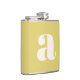 This flask features a bold oversized lowercase initial in cream on a warm butter yellow background — fun, graphic, and a great personalized gift. A solid pick for a bachelorette party, birthday, or bridesmaid gift.