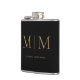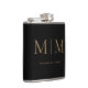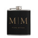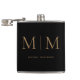 Moderno Elegante Negro Oro Monogramado Primer Clásico Nombre Personalizado Flask. Personalizar este matraz con 2 iniciales de monograma y nombre completamente monogramado. Un regalo perfecto para papá, un regalo para el novio, Navidades regalos para los padres, un regalo de vacaciones para el abuelo, o un regalo único para el novio.