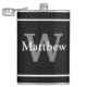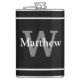 Elegante matraz de monograma blanco y negro. Perfecto para el cumpleaños, el día del padre. Personalice con su nombre e iniciales.