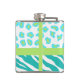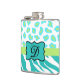 Diviértase con fiestas u otros eventos con este matraz personalizado con su monograma inicial y combinado con coloridas rayas de cebra y pieles de leopardo o chita. Este sofisticado y colorido y elegante acuario turquesa, con un verde azulado diseño de estampado de cebra y leopardo azul y blanco, está disponible en varias combinaciones de colores. Un emblema azul verde azulado turquesa está en una tira verde lima para crear un área de personalización con tu monograma o nombre. Este diseño gráfico es una de las tendencias artísticas y de diseño más llamativas, y es muy popular desde la moda hasta la decoración casera. Esto es totalmente personalizable. ¡Descansa con estos diseños de piel salvaje!