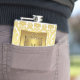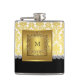 Hermosa petaca monograma negra y dorada. Puede agregar el texto de su elección en el estilo de letra, tamaño y color, o eliminar el texto.