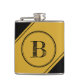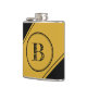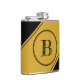 Este matraz presenta un círculo doble centrado en negro y oro sobre un fondo negro. Personalice el campo de texto con una letra inicial o un personalizar utilizando la herramienta de diseño para seleccionar un color de fuente, tamaño y estilo que prefiera.