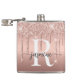 Elegante Moderno Femenino Glam Rosa Dorado Brillo Goteo Ombre Metálico Monograma Nombre Script Personalizado Flask. Estos diseños presentan su primer nombre en una bonita tipografía de letra manuscrita con cola de cisne con inicial en hoja de aluminio metálica ombre rosa dorado con borde de brillo glamuroso goteando. Estos son fáciles de personalizar. Gran regalo femenino con estilo para fiesta de despedida de soltera, regalo de inauguración de casa, también para fiesta de despedida de soltera, cumpleaños, día de la madre, fiesta de cumpleaños sweet 16, boda, fiesta de desayuno de novia, para fiesta de graduación y es para la chica que ama cosas únicas con estilo y brillo.
