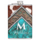 Hermoso, falso, pelo marrón y blanco, ribete de cuero falso con pintura incrustada turquesa, y mezcla de mármol turquesa falso. Agrega tu nombre con la inicial del monograma y las plantillas de apellido.