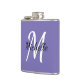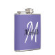 Matraz con fondo morado y personalizado blanco monograma primer y primer nombre.