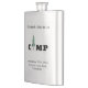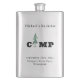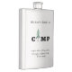 Minimalista Bachelor Camp Pine Tree Modern Monograma Flask Un regalo elegante para sus padrinos con la palabra CAMP en letras negras audaces combinado con un pino alto. Los regalos perfectos para las fiestas de soltero o bodas.