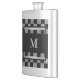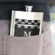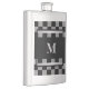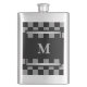 Matraz de cadera de acero inoxidable monogramada personalizada con control negro masculino. Masculino negro y gris personalizado monogramado Hip Flask para personalizar - diseñado en colores negros y grises con un llamativo marco plateado, este Hip Flask es moderno y elegante, y es fácil de personalizar. Tómate tu bebida con estilo con el Checkerboard Monogramado Clásico, o dásela a un amigo.