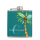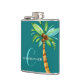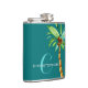 Este elegante matraz tropical de favores matrimoniales puede ser personalizado con el nombre y el monograma inicial de su mejor hombre, padrinos, hijastro, padre de la novia, padre del novio o cualquier otra persona en su fiesta nupcial. Con un fondo azul turquesa verde azulado, una palmera tropical y un guión con letras a mano elegantes y una tipografía clásica. Hace un gran regalo o favor para los miembros de tu partido nupcial.
