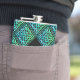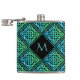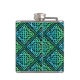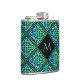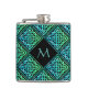 Un frasco de cadera de monograma super genial con un diseño de mosaico de diamante repetido de nudos celtas azul-verde. Regalo un regalo único personalizado, o tómalo por ti mismo, ¡lo mereces!