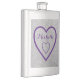 Personalizado monograma purpurina de plata en el corazón frasco de cadera para mujeres. Fondo falso de Silvery con nombre monogramado de la letra inicial. Gracioso regalo de favores para la fiesta de la soltera. Haz lo tuyo para las novias y damas de honor. Tipografía elegante. Espumosos trucos y brillantes purpurinoso.