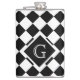 Añada un matraz de fabricación personalizado a su bar o accesorios para beber. Retro Clásico Cárter Monograma Cuadrado del Triángulo Blanco Negro. Gran idea de regalo.