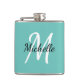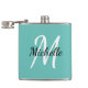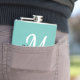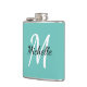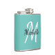 Matraz con fondo azul verde azulado claro y monograma personalizado blanco primer y primer nombre.
