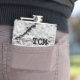 Petaca Monograma sobre madera en blanco y negro