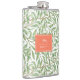 Hermoso patrón de vegetación de William Morris. Verde y marrón, fondo blanco, escudo naranja con monograma y nombre personalizado. Elegante y refinado.