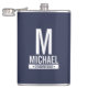 Moderno Minimalista Personalizado Monograma y Regalos de nombres Este diseño presenta el monograma, nombre y título del groomsman personalizado en negrita blanca moderna sans serif estilo tipo de letra sobre fondo azul marino. También perfecto para el mejor hombre y más.