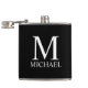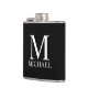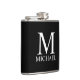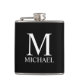 con monograma y nombre personalizados en estilo de letra serif clásico blanco sobre fondo negro.