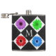 Cálida margarita colorida y rhomboide negro brillante. Monograma opcional