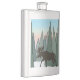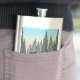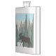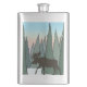 Arte estilizado de Melissa J Barrett que presenta un alce de toro, un bosque de árboles perecederos, nieve y cielo al amanecer.