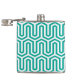 Un motivo geométrico de inspiración egipcia con un fondo blanco y turquesa y azul pavo real