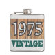 Regalo para alguien que nació en 1975. Celebra el encanto eterno de 1975 con nuestro matraz de cadera meticulosamente diseñado, hecho a la medida de los nacidos en ese año extraordinario! Este matraz presenta un gráfico cautivador que muestra orgullosamente el mensaje "1975 vintage", invocando un sentido de nostalgia y encanto. Lleva tus libaciones preferidas con estilo y atesora este matraz como símbolo de tu año de nacimiento. Descúbralo ahora en nuestra tienda online Zazzle y brinde a la magia del '75!