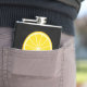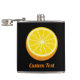 Icono de naranja a la mitad. Color de fondo personalizado. Texto personalizado.