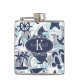 Este frágil matraz de cadera presenta un divertido patrón de verano de elementos náuticos que incluyen ancla, gaviota, pez estrella y muchos más, todo en azul marino con remolinos y acentos azul acuático ondulado. Agregue su nombre y/o monograma utilizando la plantilla proporcionada. Busque ID839 e ID840 para ver otros productos con este diseño y opciones de color adicionales.