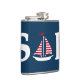 Ilustracion de diseño de textos náuticos con decoración de veleros de fondo azul oscuro. Es posible cambiar el color de fondo y añadir uno diferente al diseño con su elección.