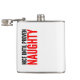 Divertidos Navidades citan, Agradable hasta que se demostró travieso. Tipografía roja y negra sobre fondo blanco. La cita aparece en ambos lados.