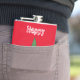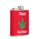 Navidades de hoja de hierba feliz matraz de fiesta. Los Navidades de Guay regalan una gran hoja de hierba verde sobre fondo rojo con un texto sacudido de blanco que dice: "Felices fiestas". Regalo de Guay para una persona de cadera.