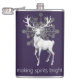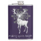 Trae alegría festiva a todos los sorbos con este elegante matorral de Navidades de reno de marfil morado. Con un elegante reno de marfil rodeado de elegantes copos de nieve, el diseño brilla con un diseño sencillo, una tipografía moderna y el alegre saludo "Making Spirits Bright". Perfecto para extender los cálidos deseos de vacaciones en las reuniones de Navidades, este matraz con temática invernal hace un encantador y práctico regalo de vacaciones para amigos, familia o usted mismo.