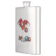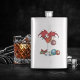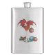 Un tierno dragón rojo en un vaso de martini con una aceituna verde. Ornamentos, aceitunas verdes y un regalo a su alrededor.