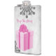 Disfruta de tus bebidas alcohólicas favoritas esta temporada de vacaciones con un matraz envuelto en vinílico de regalo para Navidades rosados. El diseño de la máscara presenta un vibrante regalo de Navidades envueltos adornado con copos de nieve grises y blancos sobre un fondo gris. También hay artículos de regalo y de vacaciones disponibles con este diseño.