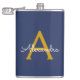 Petaca Navy Blue Gold Modern Script Girly Monograma Nombr