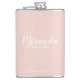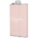 Añada un toque personal a su boda con el matraz personalizado de la dama de honor. Este matraz presenta el nombre personalizado de la dama de honor en un estilo de letra de escritura moderno y blanco con título y fecha boda en sans modernos blancos estilo de letra serif sobre fondo rosa rubor. También perfecto para la criada de honor, madre de la novia y más.