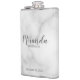 Añada un toque personal a su boda con el matraz personalizado de la dama de honor. Este matraz presenta el nombre personalizado de la dama de honor en el estilo de letra de escritura moderno y gris con título y fecha boda en el estilo de fuente sans serif gris y moderno en el fondo de mármol blanco. También perfecto para la criada de honor, madre de la novia y más.