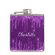 Petaca Nombre de monograma con gotas de purpurina púrpura