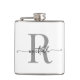 Estilo femenino moderno blanco y gris Monograma Nombre inicial Firma Script Personalizado Frasco personalizado. Con un primer nombre (o apellido) en un estilo de letra a mano bonita con fuente de cola swash tipografía (o caligrafía) con monograma inicial en gris y negro sobre blanco. Gran regalo femenino con estilo para inaugurar casa, también para despedida de soltera, para dama de honor, cumpleaños, boda, fiesta de cumpleaños de dulces 16, día de la madre, fiesta de desvelamiento de regalos de boda, para fiesta de graduación y es para la chica que ama cosas elegantes únicas y con estilo.